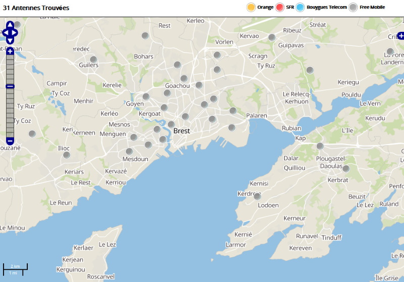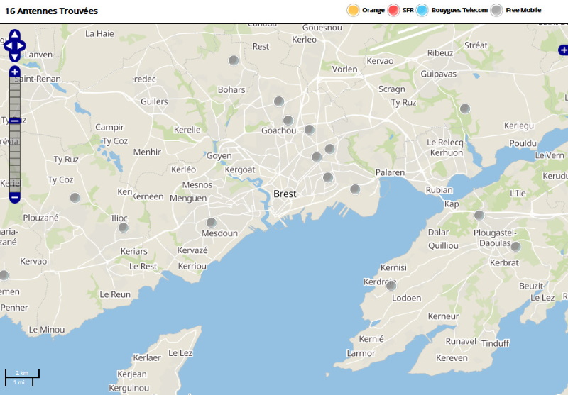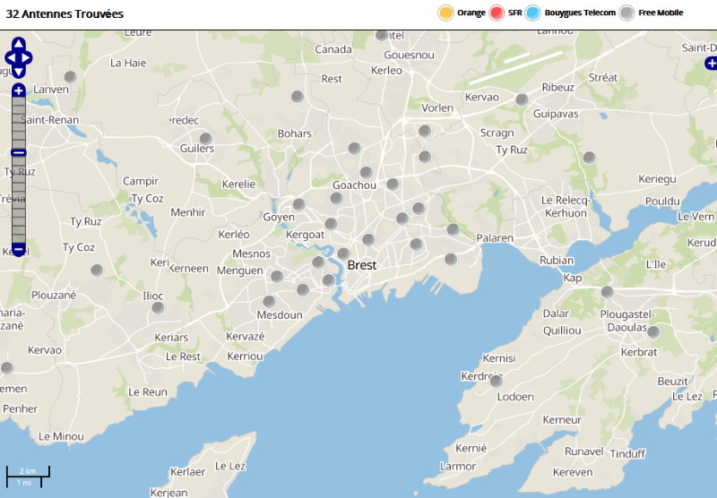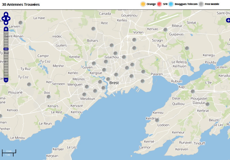 Découvrez la répartition des antennes mobiles Free 3G/4G sur Brest