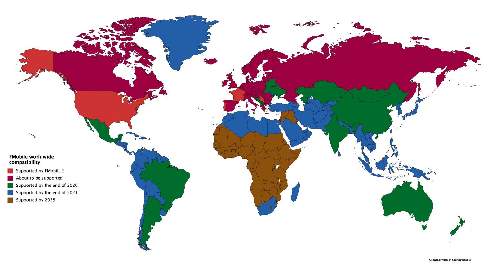 Le compte officiel FMobile 2 vient de publier une carte présentant sa feuille de route pour le support de son application dans les autres pays.