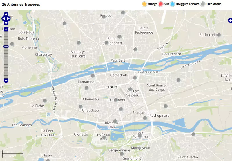 Free a implanté 17 antennes mobiles 4G dans la ville de Tours (antennes non-actives incluses).