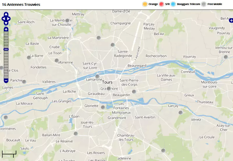 Free a également implanté 17 antennes mobiles 3G dans la ville de Tours (antennes non-actives incluses).