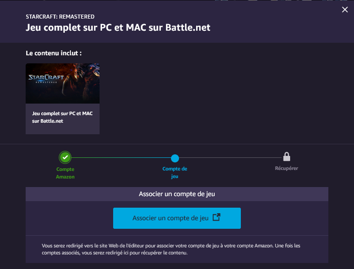 Pour récupérer ce jeu, il est nécessaire de réaliser une manipulation spécifique. Il faudra tout d’abord vous créer un compte sur la plateforme Battle.net et télécharger le launcher dédié pour jouer aux jeux de Blizzard. Connectez-vous ensuite à Prime Gaming et allez sur la page dédiée au jeu puis cliquez sur “associer un compte au jeu”. Il vous sera alors demandé de saisir vos identifiants Battle.net et de suivre la procédure, puis vous n’aurez plus qu’à cliquer sur terminer la récupération.