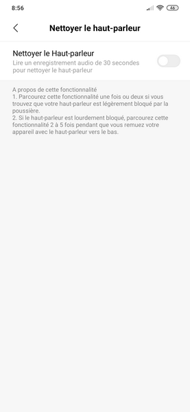 Nous avons même été surpris de découvrir une fonction de nettoyage du haut-parleur. Pourquoi pas.