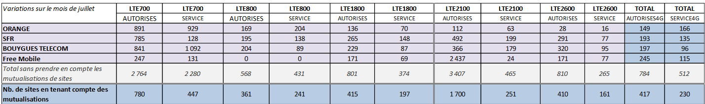 L’ANFR dévoile les chiffres de déploiement des réseaux mobiles 4G/3G durant le mois de juillet. Les opérateurs ont globalement levé le pied, même si Free s’est réveillé après un mois de juin en demi-teinte.