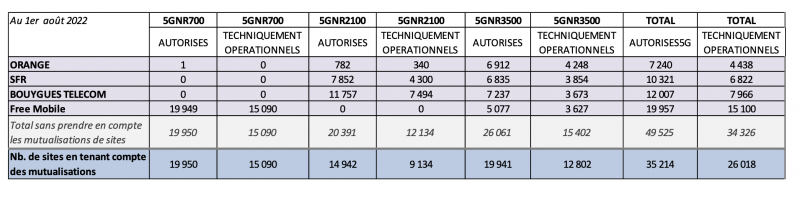 Sur la bande 3,5 GHz déployée par Orange, Free, SFR et Bouygues, 12 877 sites sont dans ce cas de figure. Pour la première fois, le nombre de supports autorisés sur la bande coeur dépasse celui des sites 700 MHz déployés uniquement par Free.