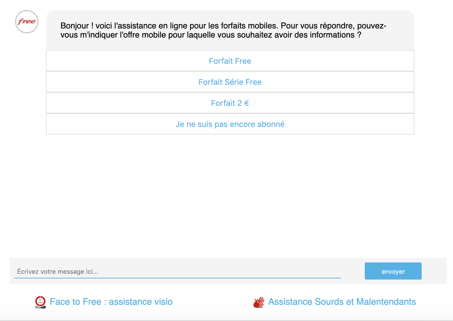C’est simple comme bonjour, choisissez votre forfait Free Mobile puis posez vos questions à l’assistance en ligne et ce même le dimanche à 4h du matin. Après le succès de Face to Free, l’opérateur de Xavier Niel met au point son propre “messenger”, dès à présent disponible sur le site web de Free dans la rubrique “Contact”, puis “Abonnés Free Mobile” et “aide en ligne”.