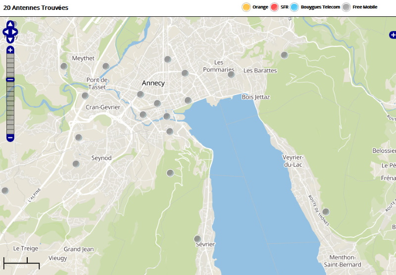 Découvrez la répartition des antennes mobiles Free 3G/4G sur Annecy