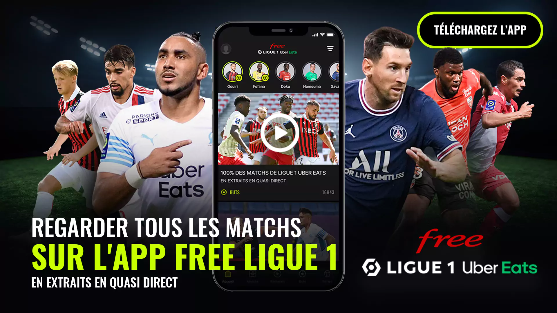 Pour rappel, l’application Free Ligue 1 est disponible gratuitement sur iOS et Android et le service est également présent sur la chaîne 63 de votre Freebox. Si vous ne faites pas partie des heureux élus, sachez qu’avec un accès gratuit, vous pouvez tout de même accéder aux buts et résumés des matchs ainsi qu’aux divers contenus originaux proposés par Free Ligue 1. L’ensemble de son offre gratuite est aussi disponible sur le site internet : www.free-Ligue1.fr