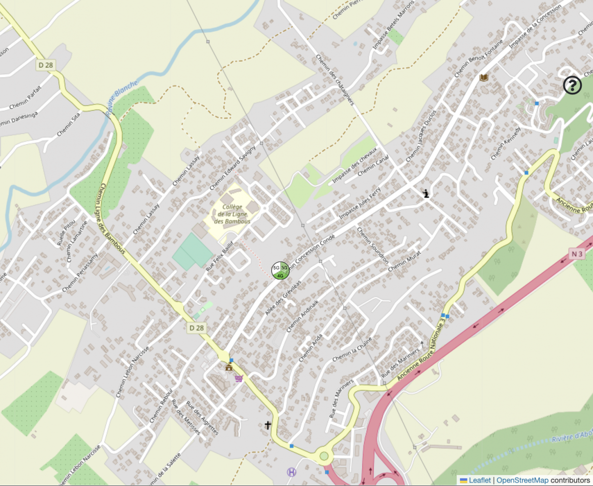 Découvrez la répartition des antennes Free Réunion 3G/4G à La ligne des bambous