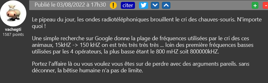 Pour un collectif dans l’Aisne, l’antenne-relais prévue par Free Mobile dans leur commune doit changer de place. Plusieurs arguments sont évoqués pour s’opposer au projet : le site est en effet situé proche d’un habitat provisoire construit après la 1ère guerre mondiale et porterait également atteinte aux chauves-souris (rhinolophes) occupant les alentours. L’espèce présente est en effet protégée et les riverains s’inquiètent de voir les mammifères nocturnes changer de localisation, moins chargée en ondes. Un argument qui ne tient cependant pas vraiment la route…