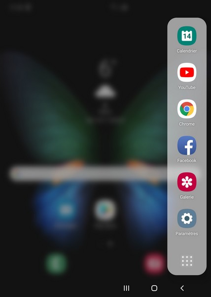 L’interface One UI du Galaxy Fold repose sur le système Android 9.0 alias Pie. Elle a évidemment été adaptée à l’appareil. Il y a exemple les boutons virtuels (pour ceux qui voudraient les garder), que l’on peut mettre à droite, à gauche ou au centre de l’écran interne.
