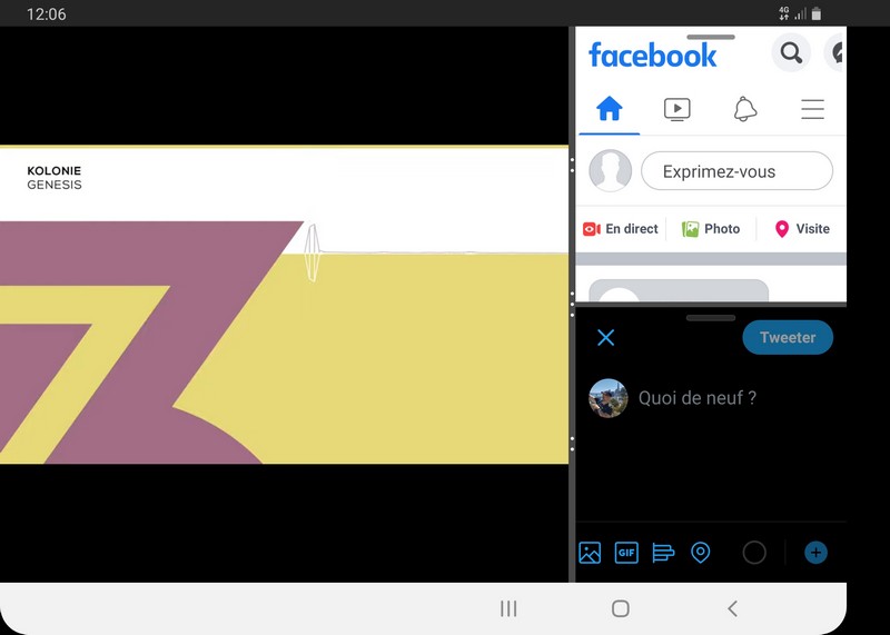 Chose pratique également : le multifenêtre qui permet d’avoir deux petites fenêtres sur la droite et une grande fenêtre sur la gauche. Ci-dessous, nous avions YouTube, ainsi que Facebook et Twitter :