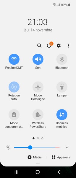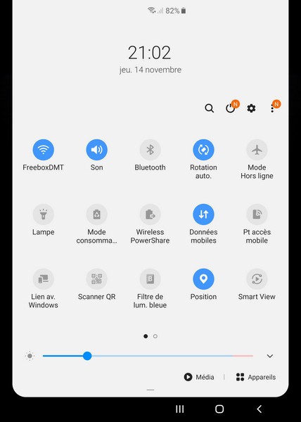 Notez enfin qu’il y a la recharge sans-fil. Nous avons ainsi pu recharger le Galaxy Fold sur le player de la Freebox Delta. La charge sans-fil permet de recharger les écouteurs sans-fil Galaxy Buds.