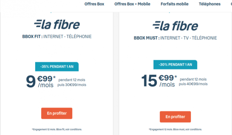 Jusqu’au 20 septembre 2022, Bouygues Telecom propose en effet deux abonnements fibre à tarifs promotionnels la première année avec un engagement sur cette dernière.