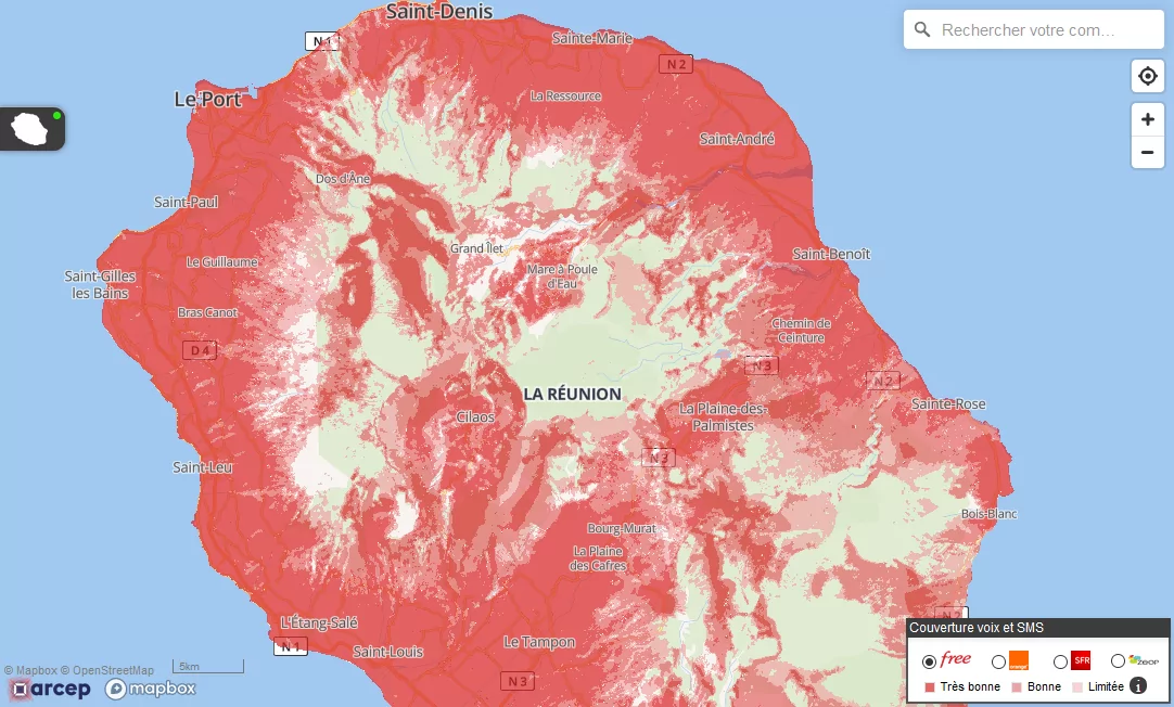 À propos de La Réunion, qui est actuellement le seul département ultramarin où Free est présent, l’ARCEP a effectué du 8 juillet au 30 août 2019, via 29 mobiles, plus de 55 000 mesures de qualité de service sur toutes les communes mesurées, avec plus de 300 points de mesure sur les lieux de vie ainsi que 10 lieux touristiques, pour l’ensemble des opérateurs réunionnais.