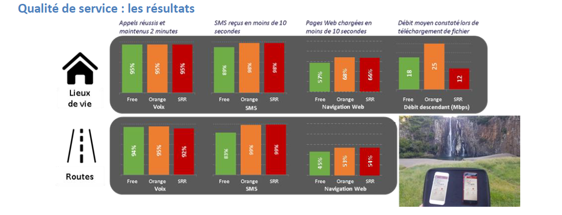 Sur les résultats de la campagne de 2018, l’opérateur de Xavier Niel et du groupe Axian, était troisième sur certains points, tel que les SMS, avec des taux de sms reçus en moins de 10 secondes de 89% dans les lieux de vie et 83% sur les routes, mais également sur la navigation web avec des pourcentages de 57% sur les lieux de vie et de 45% sur les axes routiers. Notons que sur la campagne de 2018, Free était premier ex aequo sur la voix sur les lieux de vie et deuxième sur les routes de l’île.