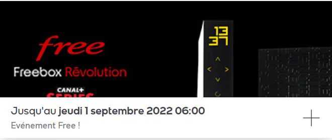 Initialement prévue jusqu’au 24 août prochain, l’offre spéciale Freebox Révolution avec TV by CANAL, proposé à 9,99€/mois pendant 1 an , puis 39,99€/mois vient d’être prolongé jusqu’au 1er septembre à 6h00. A noter qu’en sus, le service SVOD Canal+Séries est offert pendant 1 an et Amazon Prime pendant 6 mois.
