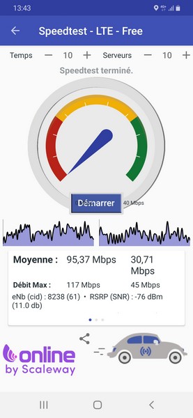 Durant nos quelques jours de tests, le Galaxy A40 nous permettait du surf et des téléchargements en 4G dans de bonnes conditions. Nous atteignions généralement les 100 Mbit/s en réception en extérieur et avons même approché les 200 Mbit/s en réception une fois.