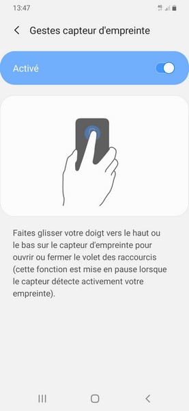 En parlant de gestion avancée des gestes, nous vous conseillons de désactiver la reconnaissance du glissement sur le lecteur d’empreintes, celui qui permet d’afficher le panneau de notifications. Celle-ci a plus tendance à agacer qu’autre chose avec les affichages non désirés.