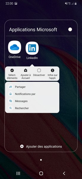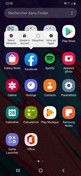 Quelques applications sont pré-installées dans le cadre de partenariats commerciaux : Facebook, Spotify, One drive, LinkedIn et Office. On peut désinstaller Spotify, mais pas les autres.