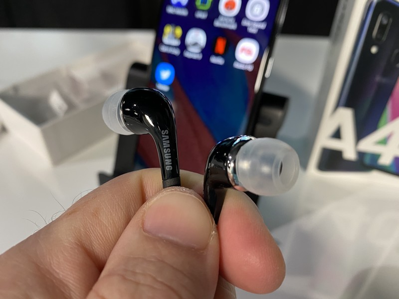 En main, le Galaxy A40 se révèle vraiment agréable avec son format compact et son poids plume. Il a d’ailleurs le même gabarit qu’un Galaxy S9, mais en plus léger. Tellement léger qu’il s’est fait oublier durant un footing d’une heure et demie alors qu’il était glissé dans la poche du short. Nous savions seulement qu’il était là, grâce à la musique envoyée dans les écouteurs Bluetooth.