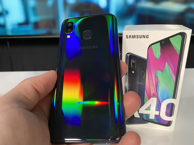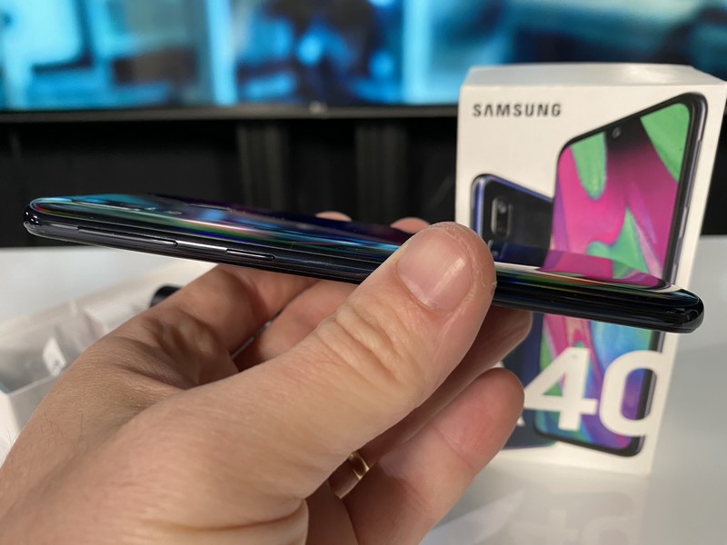 Visuellement, le Galaxy A40 est plutôt sympa, notamment dans la finition que nous avons reçue et dont la coque reflète différentes couleurs. Cela le fait un peu sortir du lot.