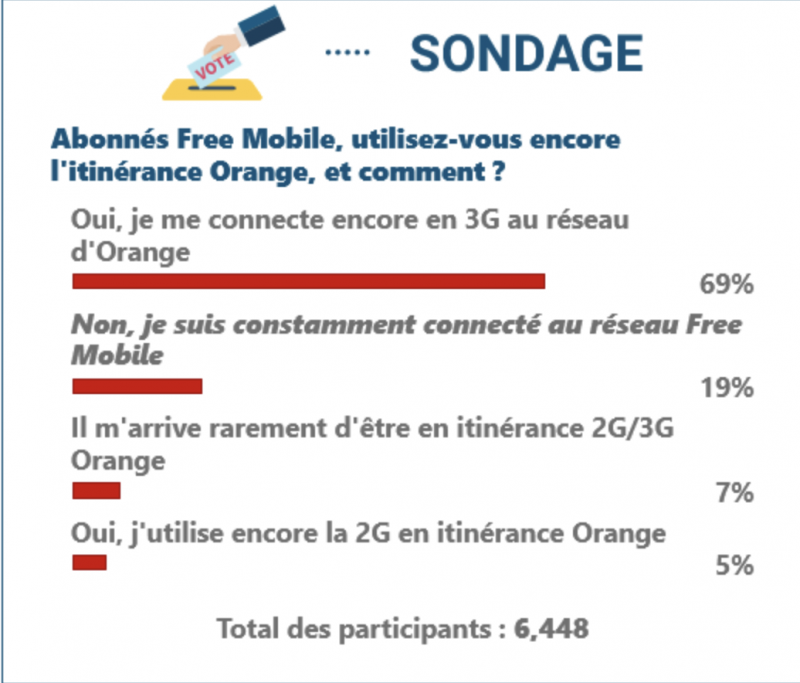 81% des abonnés Free Mobile ayant participé à notre dernier sondage, disent être connectés parfois en itinérance Orange, en 3G et pour certains en 2G.