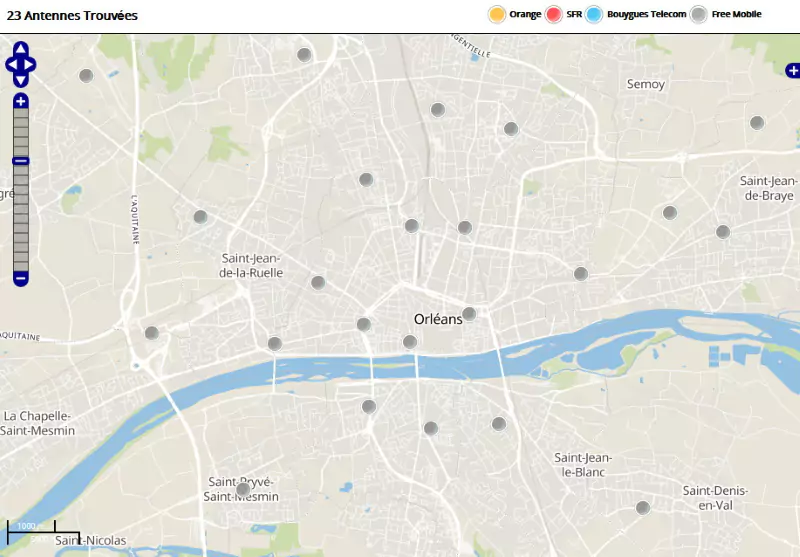 Free a également implanté 10 antennes mobiles 3G dans la ville de Orléans (antennes non-actives incluses).
