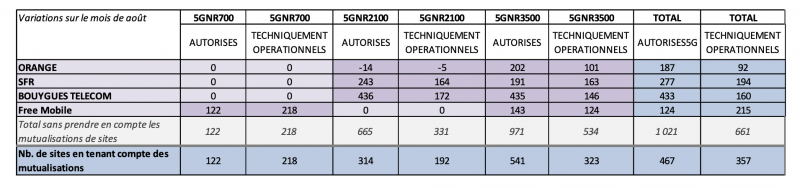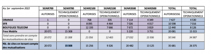 Sur la bande 3,5 GHz déployée par Orange, Free, SFR et Bouygues, 13 125 sites sont techniquement opérationnels. Le nombre de supports autorisés sur la bande coeur dépasse celui des sites 700 MHz déployés uniquement par Free.