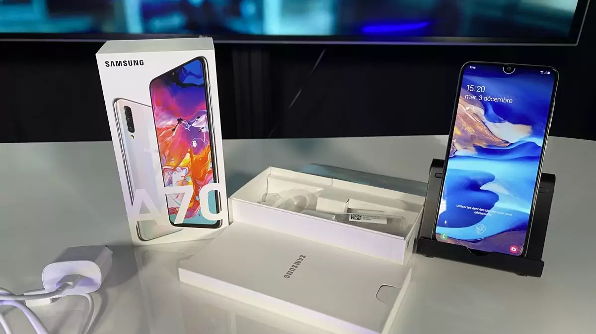Après les tests du Samsung Galaxy A20e et Samsung Galaxy A40, Univers Freebox vous propose celui du Samsung Galaxy A70, un smartphone proposant une configuration de milieu de gamme avec un grand écran.