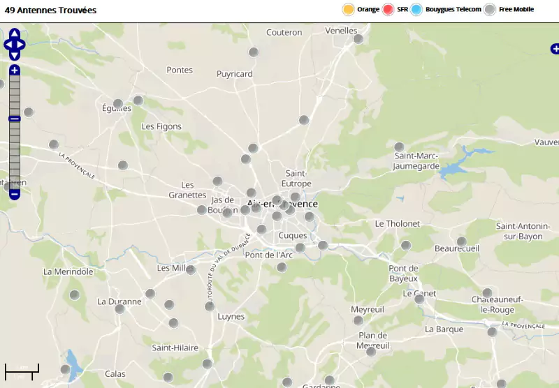 Free a implanté 29 antennes mobiles 4G dans la ville de Aix-en-Provence (antennes non-actives incluses).