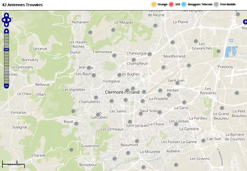 Découvrez la répartition des antennes mobiles Free 3G/4G sur Clermont-Ferrand