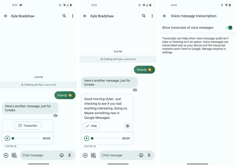 La première est assez simple, mais peut être très pratique : la retranscription en texte des messages vocaux. Ce moyen de communication de plus en plus populaire est disponible que vous utilisiez le RCS ou le SMS/MMS, mais peut s’avérer difficile à écouter si la compression est trop poussée ou si votre environnement est bruyant.