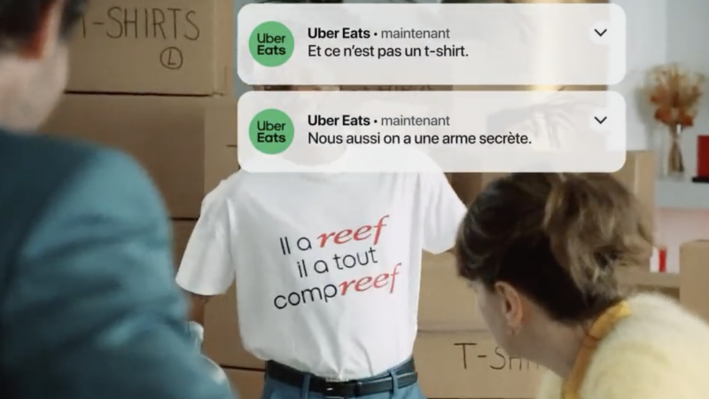 Quand des notifications Uber Eats s’invitent soudainement dans les spots pub diffusés sur TF1. Reef n’est jamais très loin.
