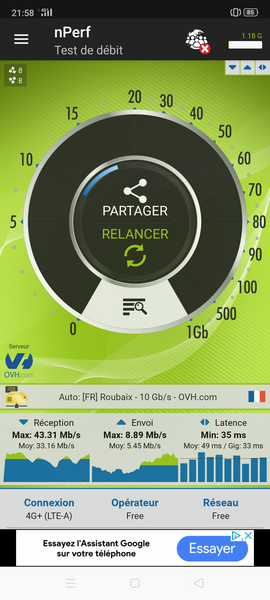 Puis un exemple des débits obtenus en intérieur, depuis une zone résidentielle :