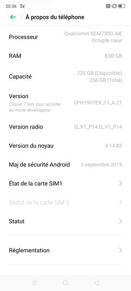 Système d’exploitation : ColorOS 6.1 avec une base Android 9.0 Pie