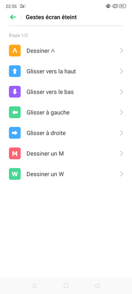 Les gestes sur l’écran éteint pour, par exemple, déverrouiller le smartphone, ouvrir l’application photo ou allumer la lampe-torche