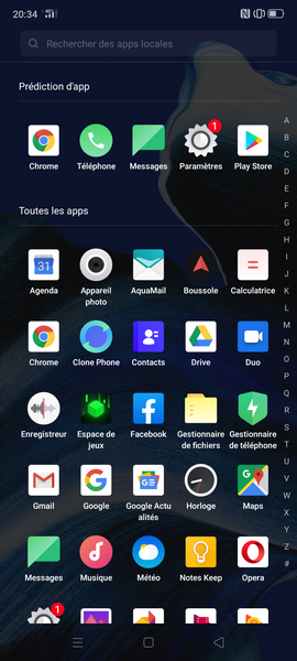 Le smartphone Oppo Reno2 s’accompagne d’une ROM ColorOS, reconnaissable à ses icônes carrées et son avalanche de couleurs. Elle repose d’ailleurs sur le système d’exploitation Android 9.0, alias Pie.