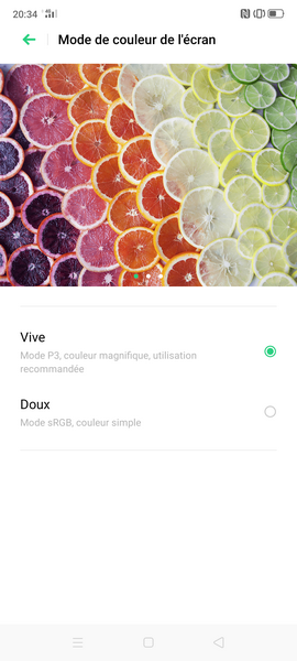 Sans grosse bordure ni encoche, l’écran du Oppo Reno2 se révèle très plaisant en vidéo ou en jeu. Aucun intrus dans le champ de vision. Le choix d’une dalle AMOLED permet d’avoir un bon rendu des couleurs. Dans les paramètres, on pourra régler la chaleur d’affichage. Rien à redire du côté de la luminosité, assez élevée pour une lecture confortable en extérieur.