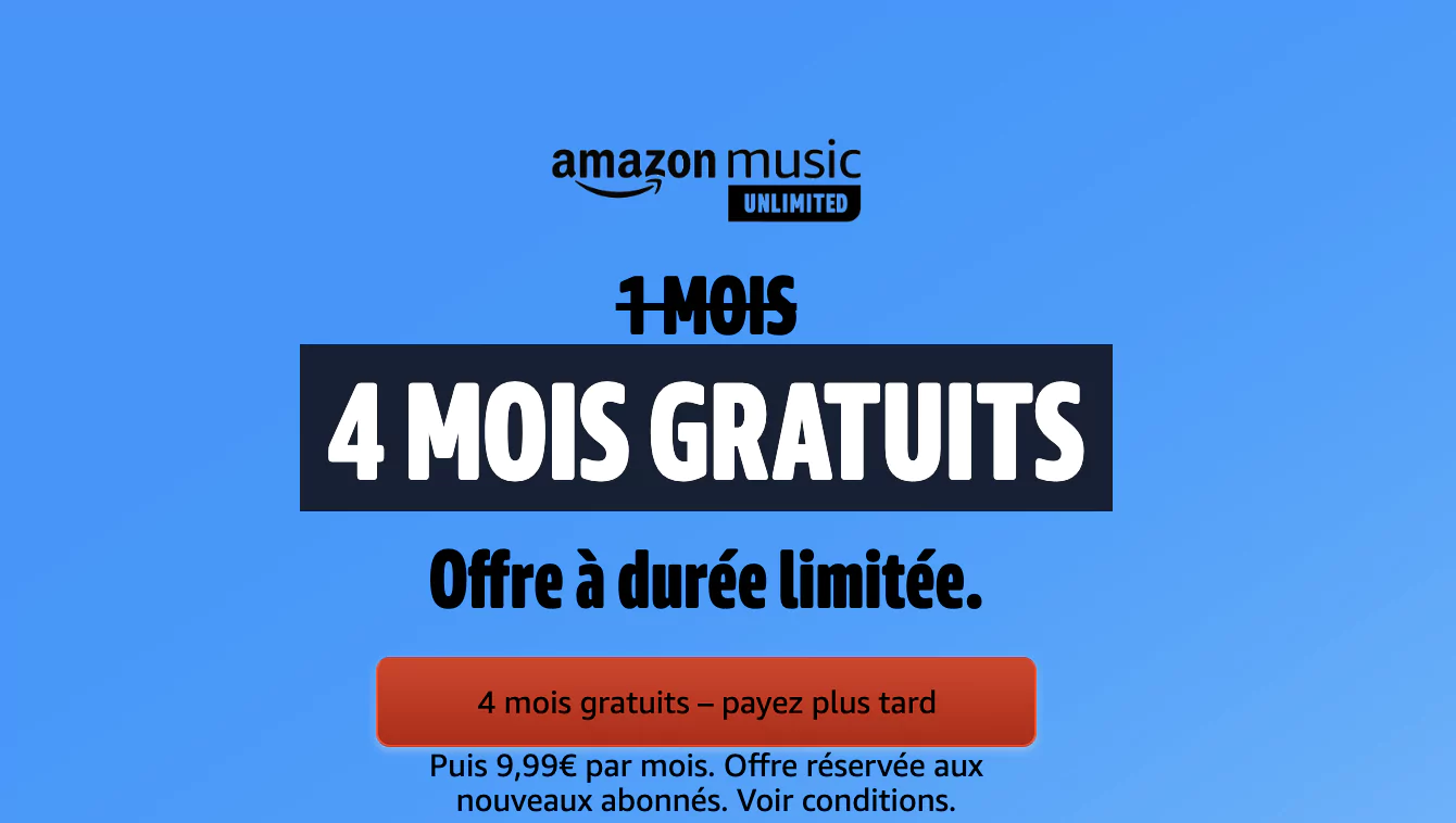 4 mois gratuits au lieu d’un pour les nouveaux abonnés à Amazon Music Unlimited.