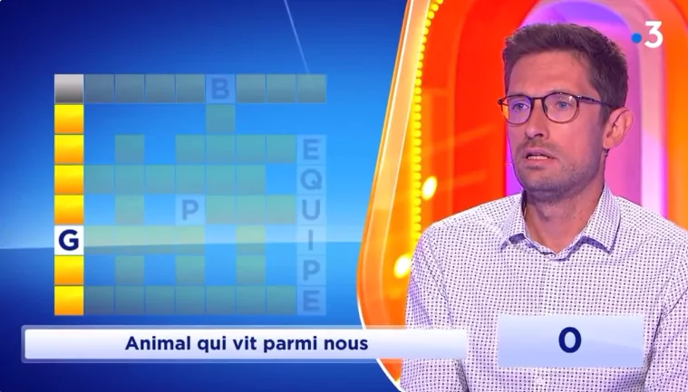 Lors de la seconde manche, celle de la grille en douze mots à remplir, l’émission présentée par Cyril Féraud a vu un candidat donné une réponse assez spéciale. Vincent, son adversaire, venait de donner “équipe” pour “son esprit soude”, Guillaume, lui, devait trouver le mot correspondant à “animal vivant parmi nous“. Il devait composer avec un “g“, en sixième lettre. Le candidat lance, sans vraiment prendre le temps de réfléchir, : “étranger“. Se rendant compte de son erreur, Guillaume, mal à l’aise, perd peu à peu ses moyens et ne sait plus quoi dire, devant l’animateur qui écarquille les yeux avant de lui lancer : “Je sais pour qui vous avez voté à la présidentielle !“. “C’est le seul mot qui me soit venu…“, justifie le candidat. Le bon mot se trouvait être “mistigri“. Le candidat reviendra sur le sujet un peu plus tard : “La honte…Je suis bon pour le zapping“. “Oui, pendant quinze ans !“, conclura l’animateur.