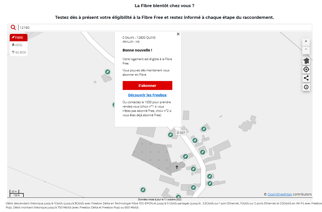 Free commence à rendre éligible de nombreuses adresses présentes sur le RIP ALL Fibre, présent dans l’Aveyron, le Lot et la Lozère. Si pour l’heure aucun accord n’a été officialisé, plusieurs adresses se voient proposer de souscrire à une offre fibre de l’opérateur de Xavier Niel dans des communes comme Quins, Naucelle, Camjacn Centres ou encore Cassagne-Beghones et d’autres. Les futurs abonnés peuvent consulter eux même la carte officielle de l’opérateur permettant de savoir si votre adresse est encore à l’étude ou si vous pouvez y souscrire tout de suite.