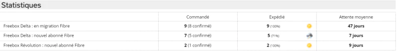 Comme on peut le constater sur ce site, le délai actuel est des 47 jours pour recevoir sa Freebox delta en migration. Mais les résultats ne sont pas très fiables pour le moment puisqu’il y a peu d’inscrits. Si vous avez demandé votre migration, n’hésitez donc pas à l’indiquer sur ce site afin d’avoir des résultats plus proches de la réalité.