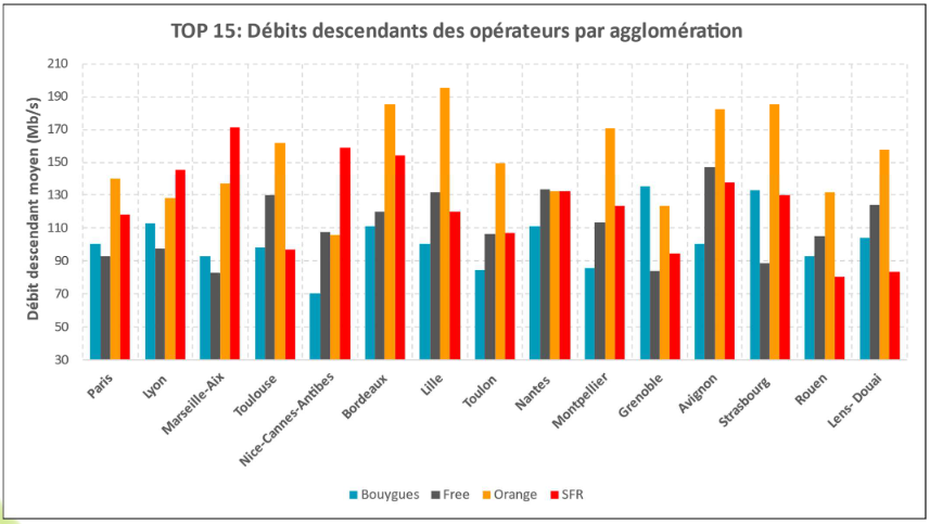 Orange conserve son leadership, Free leader sur une seule agglomération en débit descendant