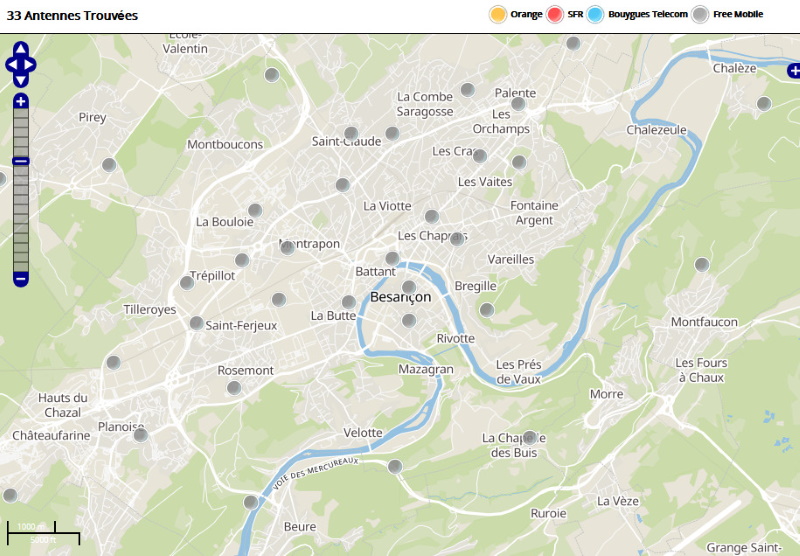 Découvrez la répartition des antennes mobiles Free 3G/4G sur Besançon