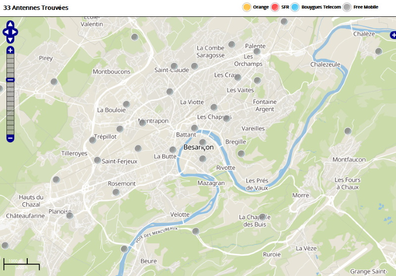 Free a également implanté 27 antennes mobiles 3G dans la ville de Besançon (antennes non-actives incluses).