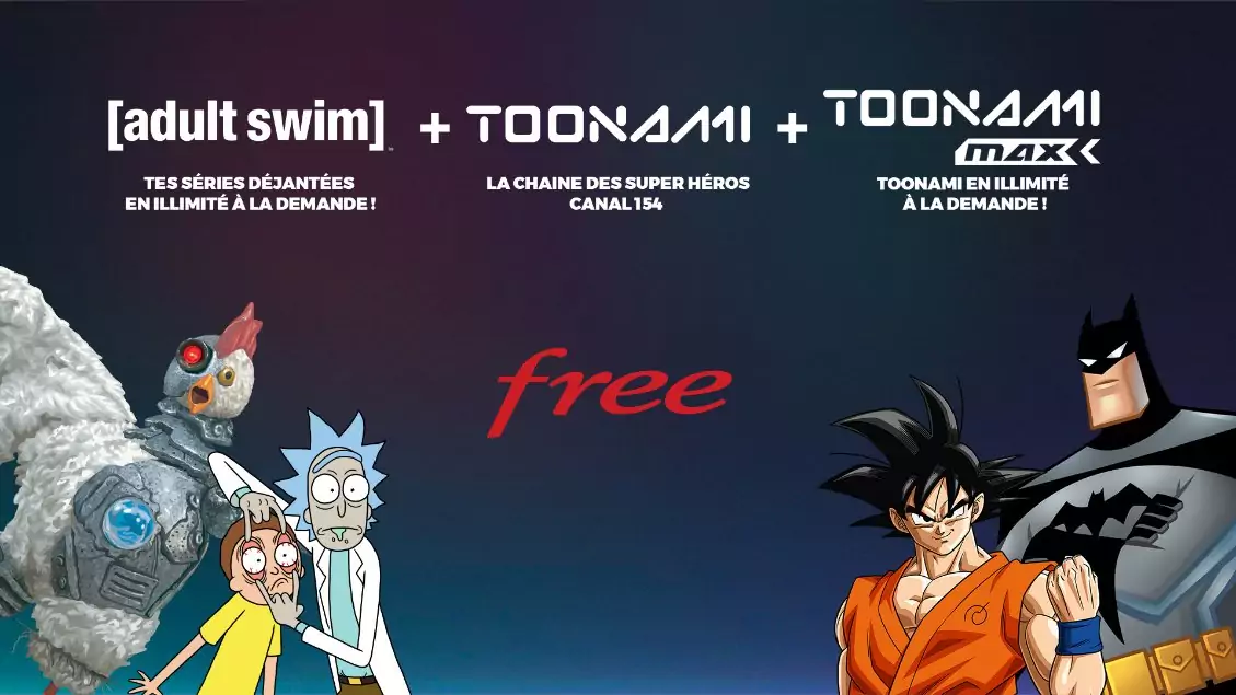 Avis à tous les abonnés Freebox, Free lance un pack comprenant la chaîne Toonami et deux nouveaux services VOD en illimité, “Toonami Max” et “Adult Swim”. De quoi profiter d’un grand nombre de séries animées dont Rick et Morty, Final Space et Robot Chicken en illimité.