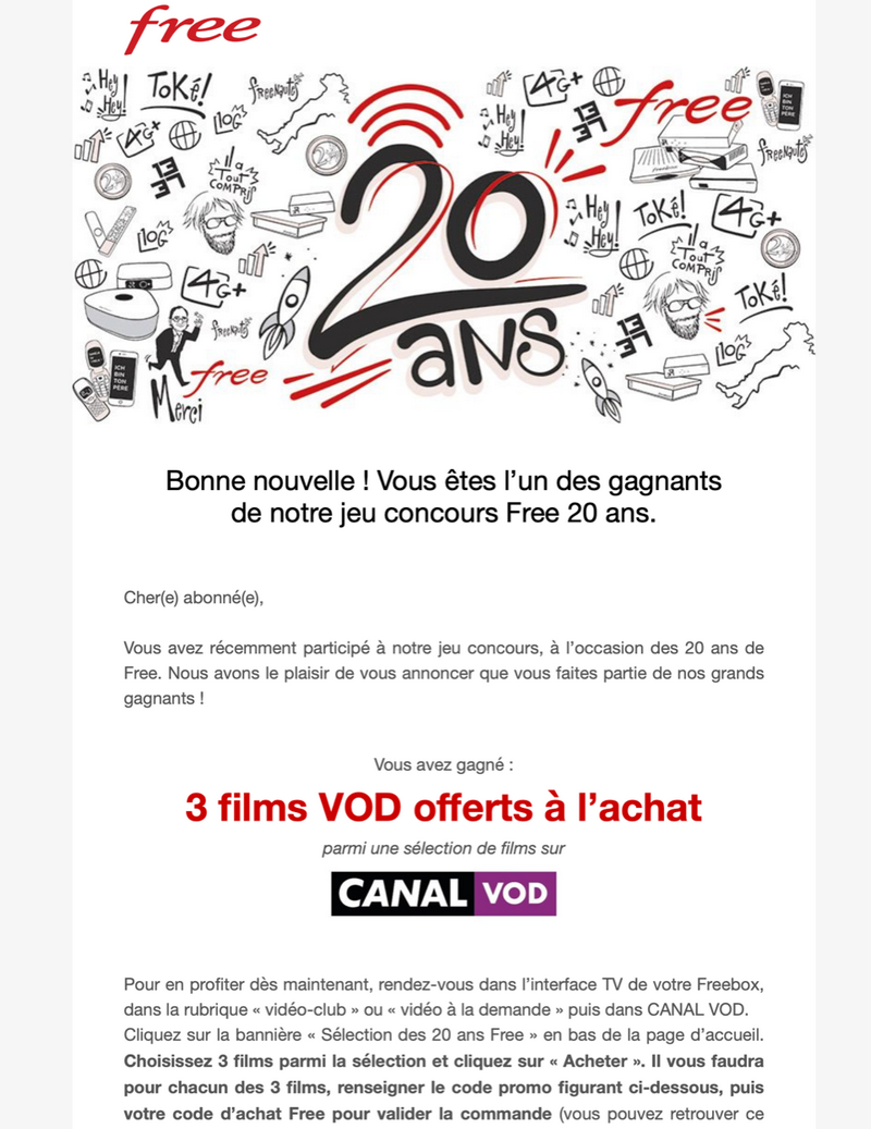 Ceux ayant participé et faisant partie des gagnants commencent à recevoir leur cadeau, comme en atteste un e-mail reçu par un Freenaute :