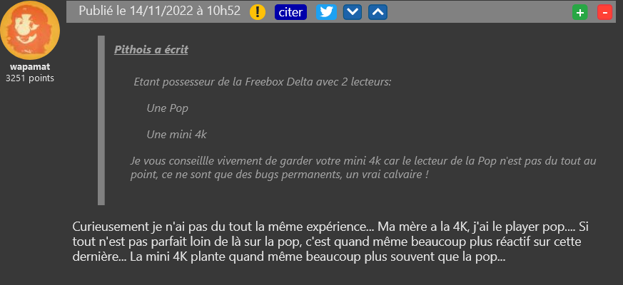 Après avoir commencé à permettre à ses abonnés de migrer vers la Freebox Delta en octobre dernier en fonction des stocks disponibles, Free permet à présent à ses abonnés Freebox mini 4K de migrer vers la Freebox Pop. Une bonne nouvelle pour ceux souhaitant opter pour une box plus puissante, mais certains peuvent se questionner sur la qualité du player proposé. Il faut cependant rappeler qu’un seul retour d’expérience ne suffit pas : lisez-en plusieurs ! Même dans notre espace commentaires, plusieurs sons de cloches peuvent résonner.