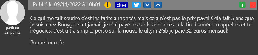 Des offres un peu plus chères après une montée en gamme de la Bbox Must. L’opérateur a lancé la semaine dernière sa toute nouvelle box compatible WiFi 6 pour son forfait milieu de gamme et en a profité pour revoir à la hausse les tarifs de ses offres fixes, avec une hausse de 1€ mensuels pour chaque offre. Cette augmentation concerne uniquement les nouveaux abonnés pour le moment, mais patbeu rappelle qu’avoir un peu de bagout et tomber sur le bon correspondant peut permettre une ristourne commerciale chez la plupart des opérateurs. Si vous souhaitez faire des économies, cela ne coûte rien d’essayer de négocier !
