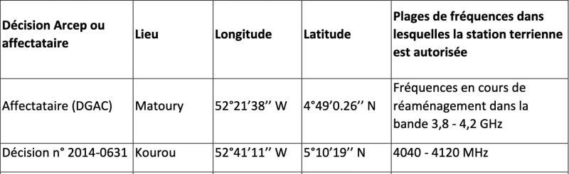 Ces erreurs se trouvaient au niveau des localisations (Longitude – Latitude) des bandes 700 MHz et 3,4 – 3,8 GHz qui se trouvent sur les villes de Matoury et Kourou. Toutes ces données étaient précisées en degré décimal alors qu’elles devaient être notifiées en DMS (Degrés Minutes Secondes).
